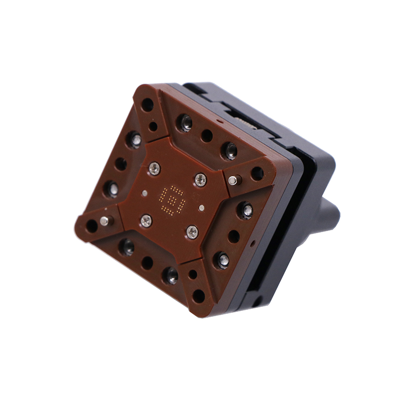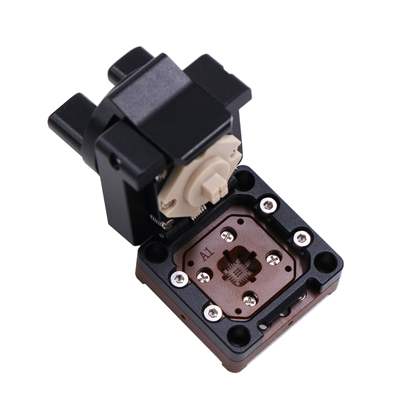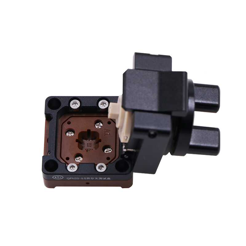 产品名称:定制QFN20-0.5 4x4开尔文合金旋钮翻盖测试座