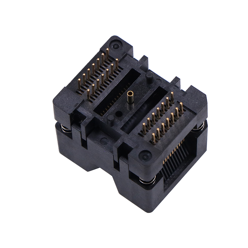 产品名称:SOP28-0.65mm下压弹片加接地测试座